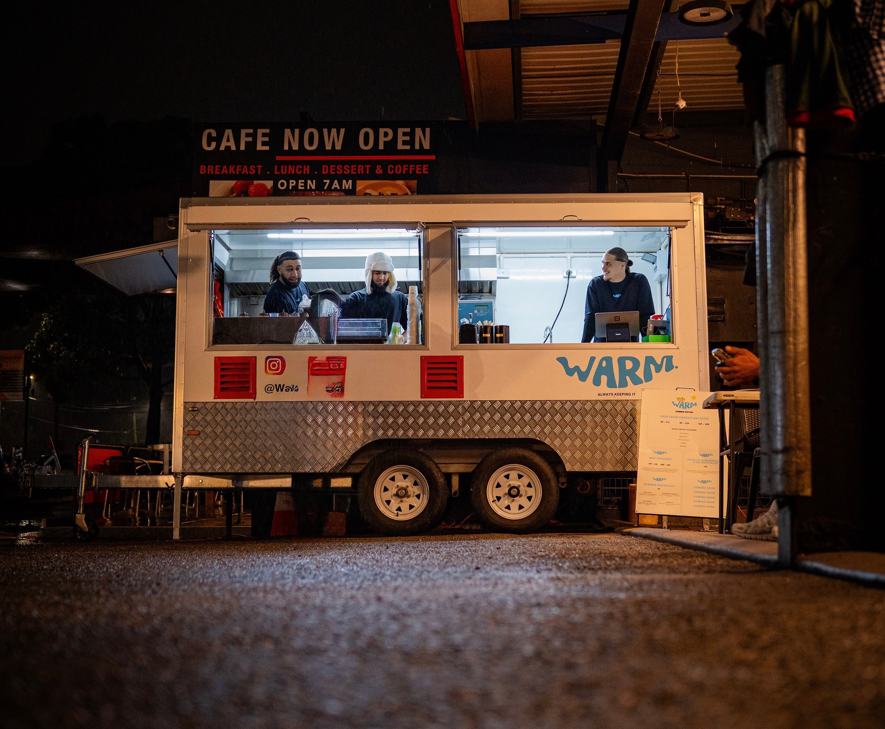 At Warm we’re more than just a food truck we’re a mobile experience built on creativity, community and the very best customer service. Born from a love of bold flavors and good vibes, Warm brings people together through thoughtfully crafted dishes served fresh from our truck. Whether you’re chasing your cravings or discovering us for the first time, our menu blends familiar warmth with unique twists, always designed to satisfy and surprise. From local streets to special events, we roll with purpose: to serve great food, share good energy, and make every stop feel like home.